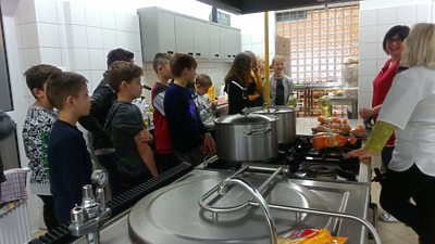 Uczniowie dziękują paniom z kuchni za to, że zapoznały ich z pracą kucharza i jego stanowiskiem pracy. Zainspirowani tą wycieczką, po feriach, próbowali swoich umiejętności kulinarnych podczas zajęć technicznych. Podziękowania składają również paniom przedszkolankom.