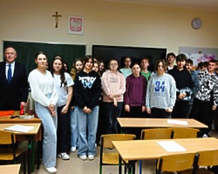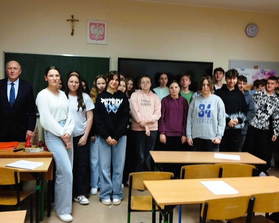 18 grudnia uczniowie klas ósmych, w ramach lekcji wiedzy o społeczeństwie spotkali się z wójtem gminy Trzcinica, panem Grzegorzem Hadzikiem. Tematyka spotkania dotyczyła samorządu terytorialnego. Uczniowie dowiedzieli się, jakie zadania własne i zlecone są realizowane w naszej gminie, skąd gmina czerpie pieniądze na realizację swoich zadań, a także jakie są najważniejsze zadania gminy na następny rok. W końcowej części lekcji uczniowie mogli zadawać pytania, dotyczyły one głównie planów gminy na następny rok. Lekcja była podsumowaniem wiadomości o samorządzie terytorialnym.