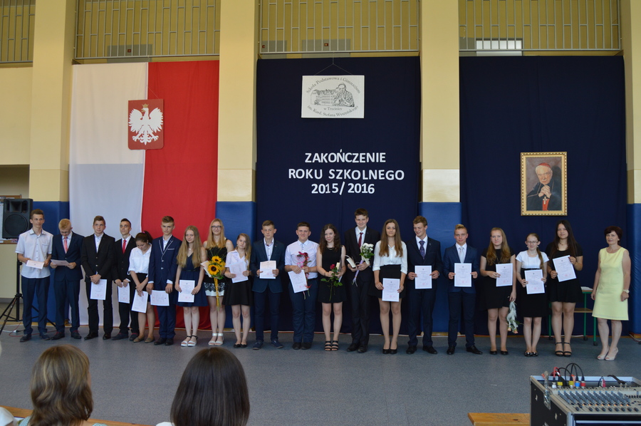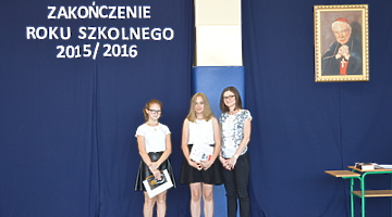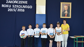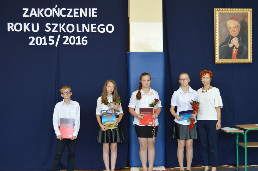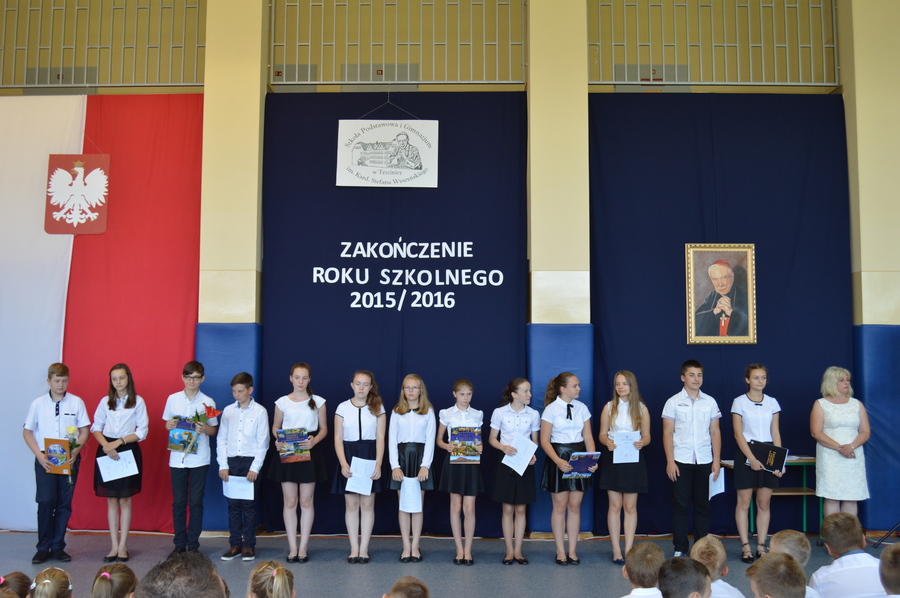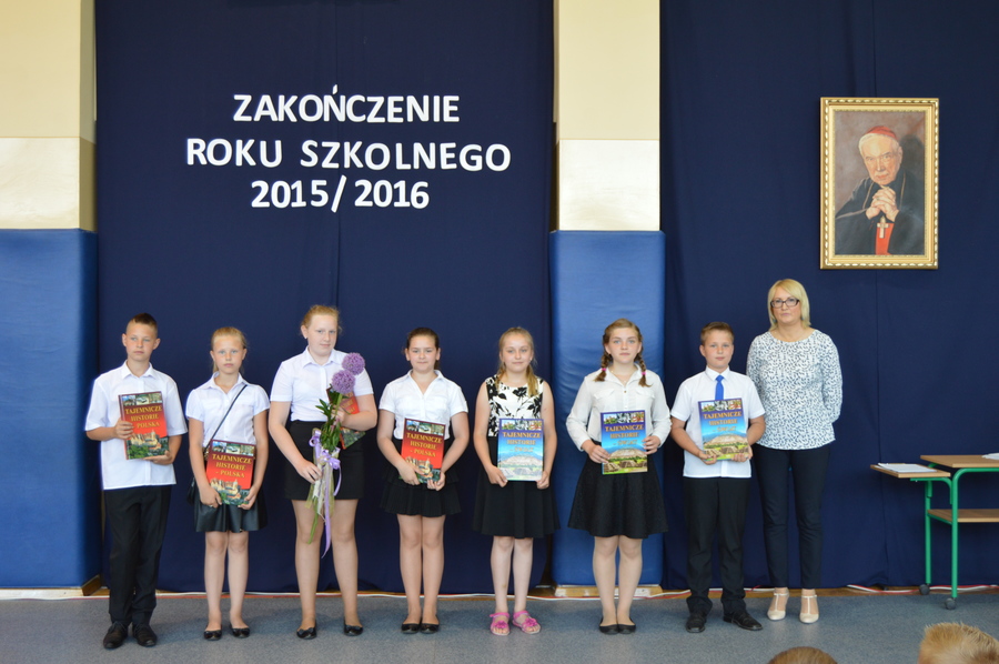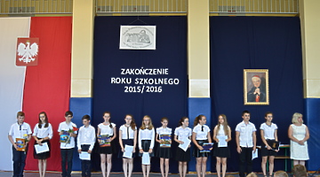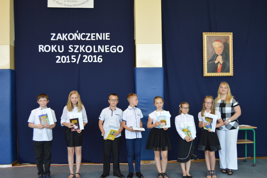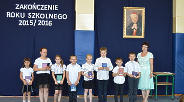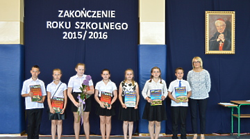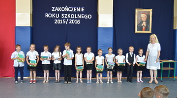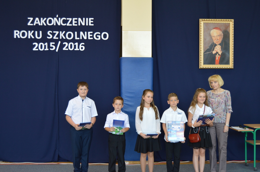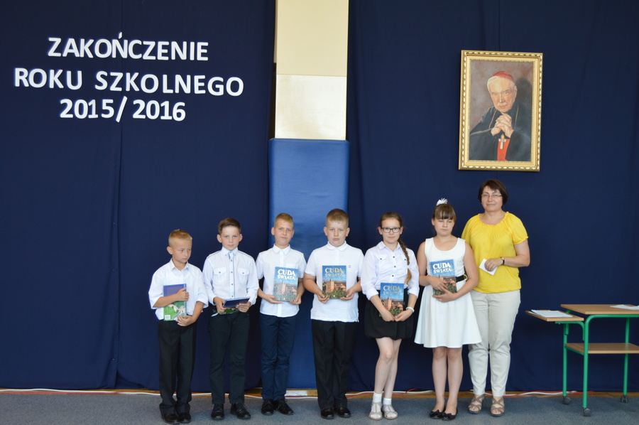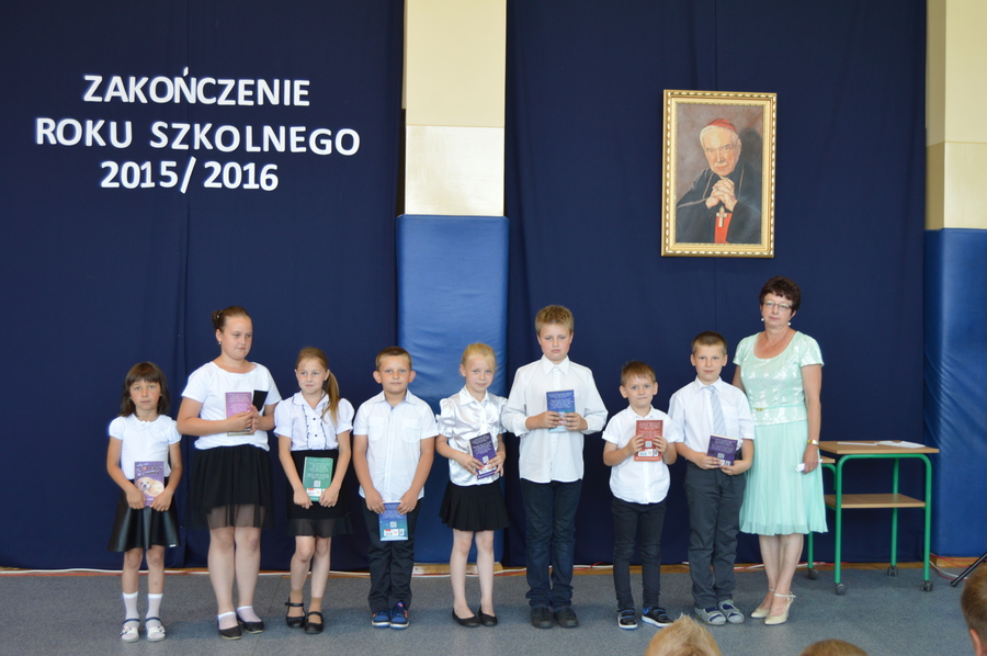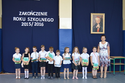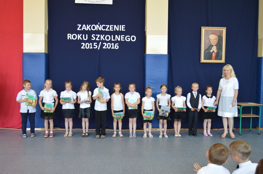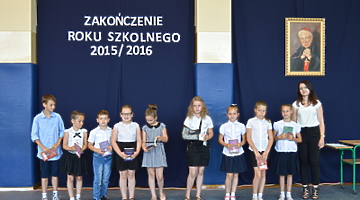 Uczniowie kl. I-III, którzy uzyskali najlepsze wyniki w nauce w roku szkolnym 2015/2016: Lena Strycharek, Ewa Więcek, Magdalena Adamska, Agata Adamska, Miłosz Kruber, Weronika Uszycka, Oliwier Pawlik, Marcin Stefański, Jagoda Ceglarska, Michalina Walczak, Anna Kardaś, Kłobucka Wiktoria, Oliwia Parzonka, Amelia Tomalik, Krystian Tyrała, Magdalena Wielgosz, Natalia Zimoch, Rafał Zimoch, Nikola Cugier, Kacper Durka, Malwina Pawlyta, Magdalena Warzecha, Karolina Gatner, Jesika Gatner, Martyna Gąszczak, Katarzyna Graczyk, Julia Janus, Michalina Jokiel, Oliwier Orkiszewski, Nikola Nowak, Jakub Szar. Adam Matysiak, Aleksander Zieliński, Amelia Słupianek, Łukasz Papiór, Marta Skoczylas, Patryk Wabnic, Marta Kozińska, Martyna Wyrwa, Jakub Parzonka, Edyta Fajga, Amanda Juszczak, Kacper Kuboszek, Kacper Nawrocki, Patryk Fiołka, Martyna Antoniak, Mikołaj Fusek, Maciej Żurawa, Wiktoria Kuboszek, Dominik Pawlik.