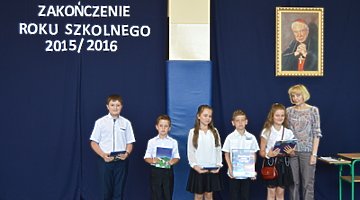 Uczniowie kl. IV-VI, którzy uzyskali najlepsze wyniki w nauce w roku szkolnym 2015/2015 (świadectwo promocyjne lub ukończenia szkoły z wyróżnieniem): Karolina Dłubak, Patrycja Biegańska, Maja Tomalik, Szymon Gość, Dominik Pigulski, Marcin Maryniak, Emilia Zimoch, Anna Więcek, Martyna Gnacy, Aneta Szymańska, Wojciech Wolski, Mateusz Pawlik, Natalia Pawlik, Kornelia Jeziorna, Kinga Krzyształowicz, Maja Krzyształowicz, Denis Gatner, Oliwia Rachlak, Milena Rosielewska, Miłosz Żurawa, Julia Gatner, Maciej Stodółka, Paulina Adamska, Natalia Parzonka, Wiktoria Nowak, Wioletta Wagner, Julia Jokiel, Kacper Lenort, Kacper Bednarek.