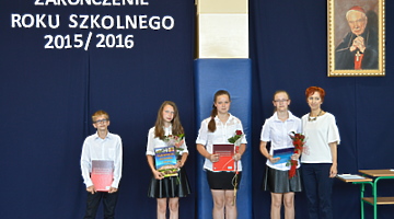Listy pochwalne (średnia ocen minimum 5,0 i wzorowe zachowanie) otrzymali: Karolina Dłubak, Patrycja Biegańska, Maja Tomalik, Szymon Gość, Anna Więcek, Martyna Gnacy, Mateusz Pawlik, Natalia Pawlik, Kornelia Jeziorna, Milena Rosielewska, Miłosz Żurawa, Julia Gatner, Maciej Stodółka, Natalia Parzonka, Wiktoria Nowak, Wioletta Wagner, Julia Jokiel.
