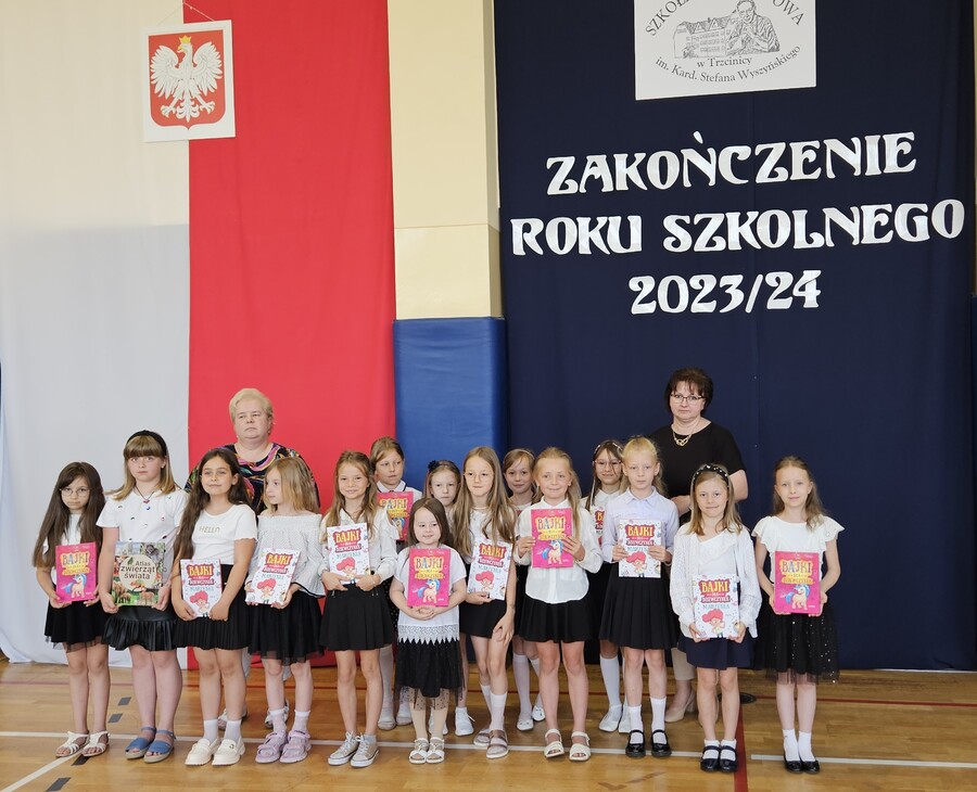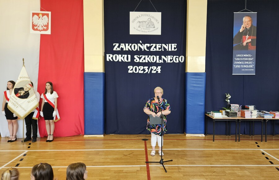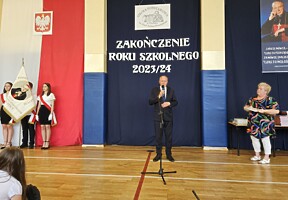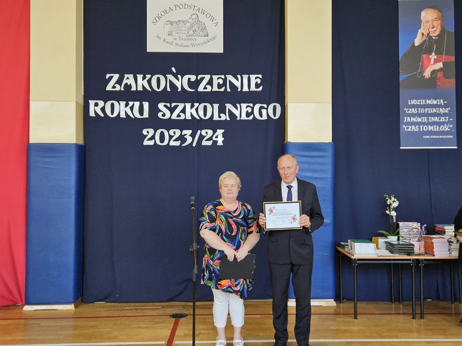 Dalsza część odbywała się w szkole gdzie gości, uczniów, rodziców i nauczycieli powitała dyrektor szkoły pani Ewa Hetmańczyk, która wraz z obecnym na uroczystości wójtem gminy Trzcinica – panem Grzegorzem Hadzikiem złożyli uczniom i rodzicom gratulacje, nauczycielom podziękowania, a wszystkim życzyli udanych wakacji.