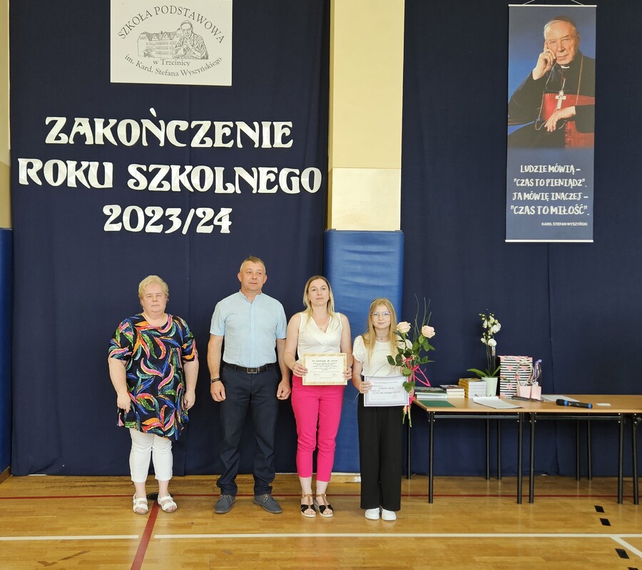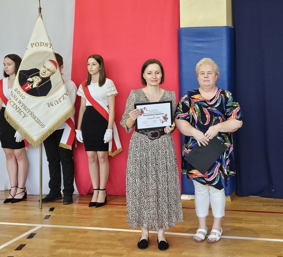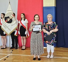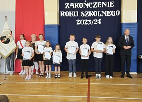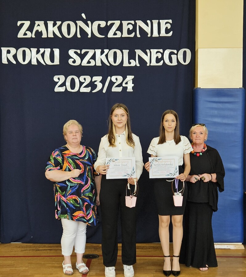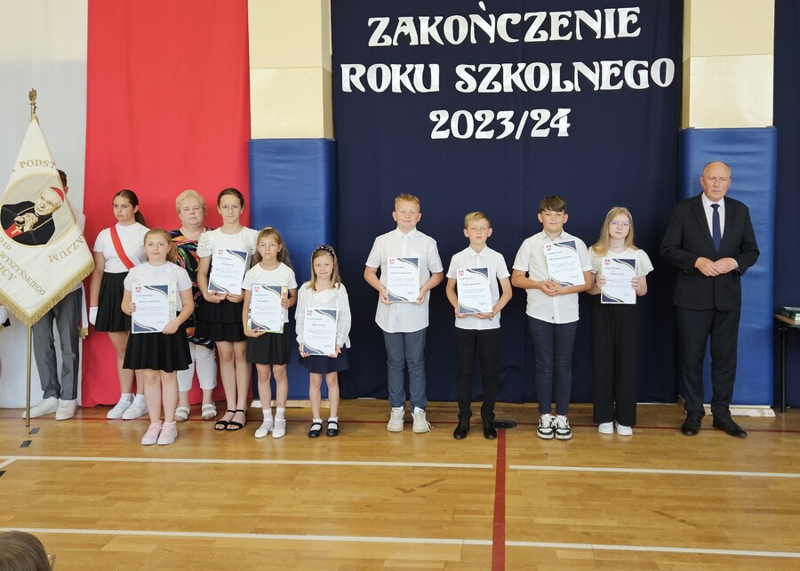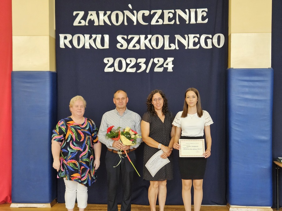 Na forum szkoły wręczono również świadectwa ukończenia szkoły ósmoklasistom: Kornelii Henrykowskiej, Milenie Zimoch, Damianowi Mikosiowi, Gracjanowi Mikosiowi, Alanowi Maince.