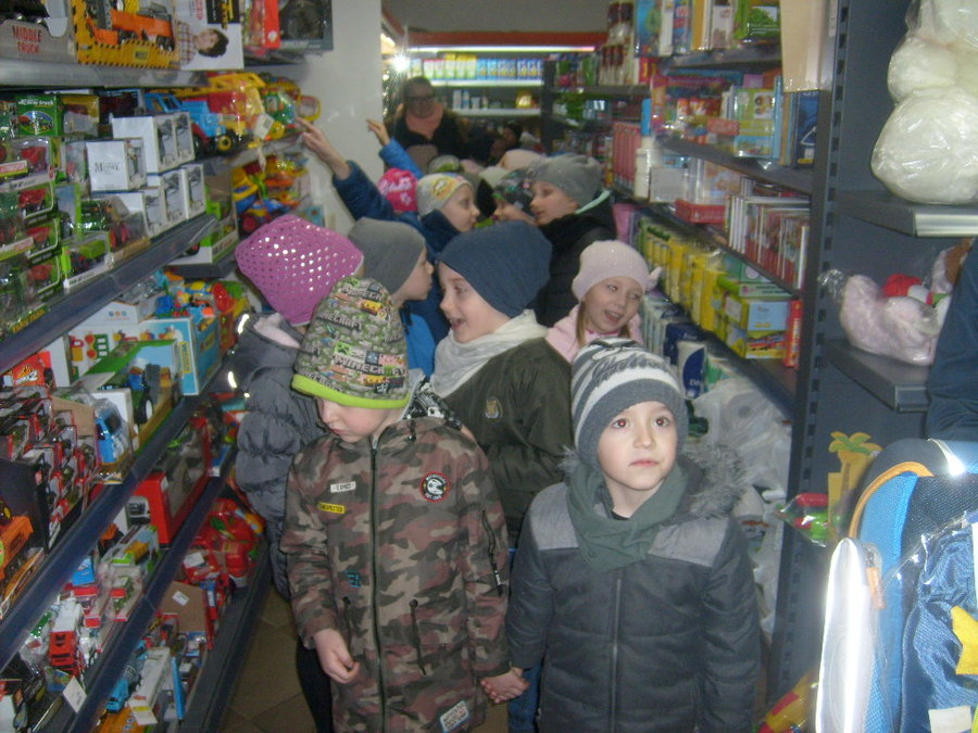 29 marca 2019r. dzieci ze starszych grup przedszkolnych wybrały się na wycieczkę do sklepu „Centrum handlowe – Zimoch”, aby poznać pracę sprzedawcy. Spacerując między półkami z różnymi produktami miały okazję odszukać również produkty mleczne, zbożowe, mięsa i wędliny, czyli takie, które pochodzą z gospodarstwa. Dzieci obserwowały pracę sprzedawcy i obsługę kasy fiskalnej. Na zakończenie wspólnie z wychowawcami zakupiły chrupki kukurydziane, którymi po powrocie do przedszkola podzieliły się z młodszymi koleżankami i kolegami.