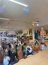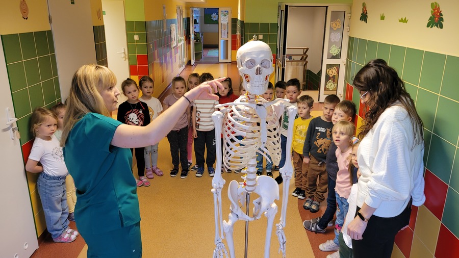 Dziś przedszkolaki utrwaliły wiadomości z zakresu „Zdrowia”, to wszystko dzięki odwiedzinom pani Danuty Młynarczyk (mamy przedszkolaka z grupy „Jeżyki”). Pani Danuta, która pracuje w zawodzie fizykoterapeuty przedstawiła dzieciom, w jaki sposób powinny dbać o siebie, a zwłaszcza o swoją sylwetkę. Wytłumaczyła „Co należy robić, aby być zdrowym przedszkolakiem?”.