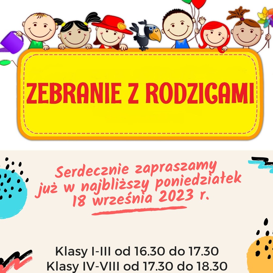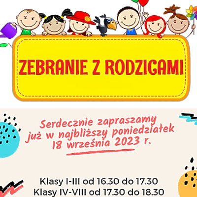 18 września 2023 r. odbędą się zebrania z rodzicami w następujących godzinach: