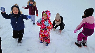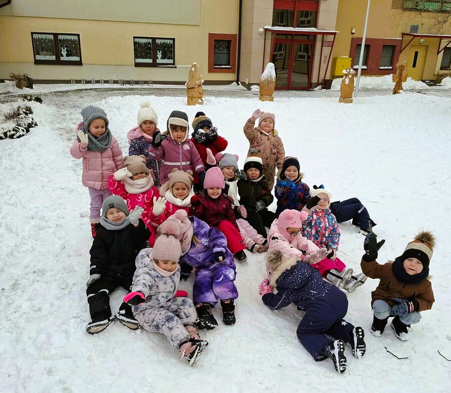 Zima nie odpuszcza więc przedszkolaki korzystają z jej uroków ile się da.