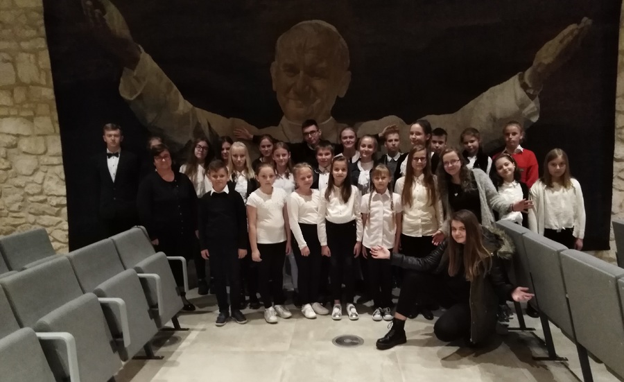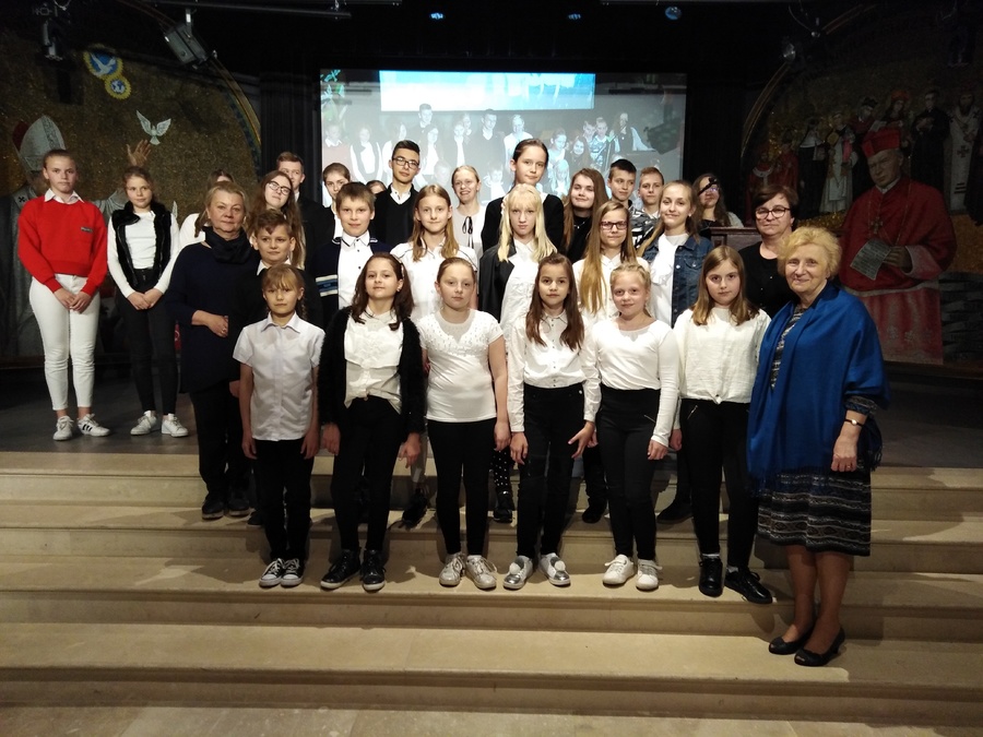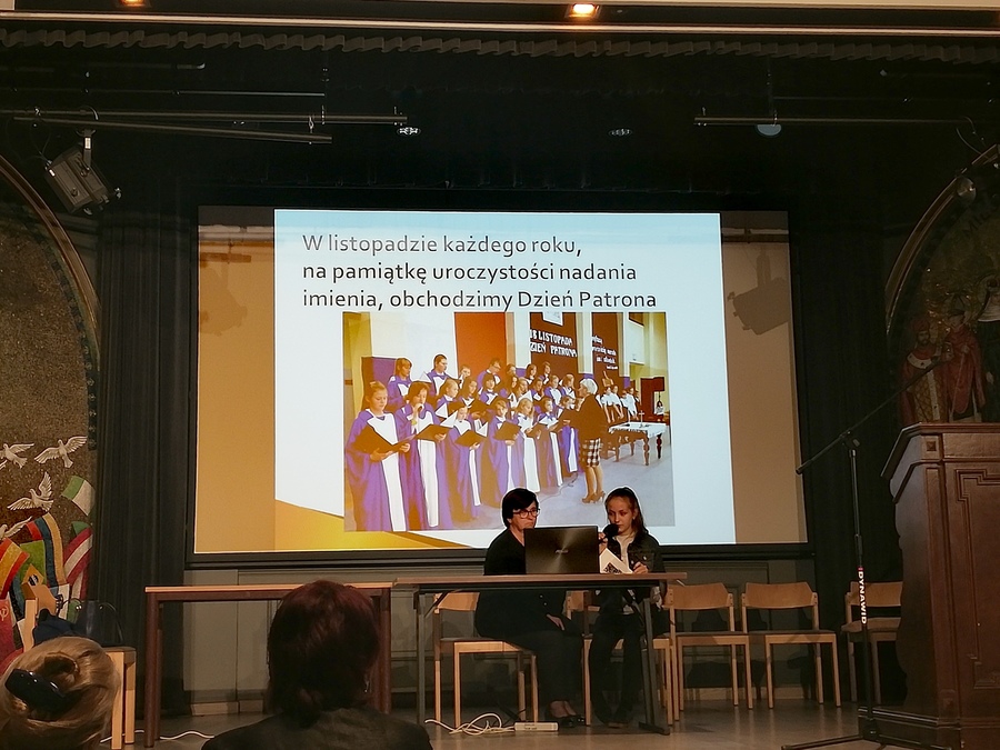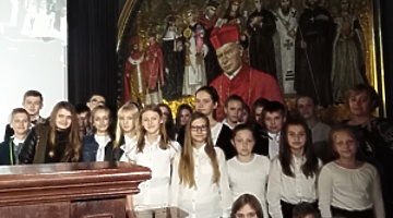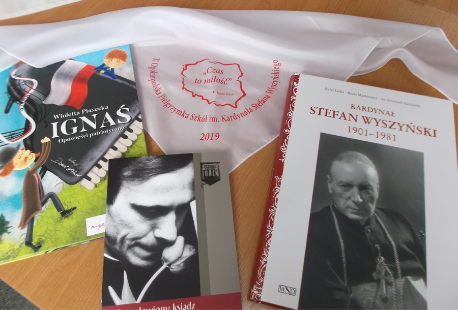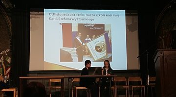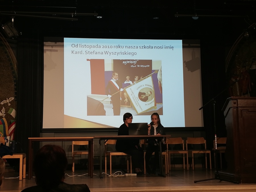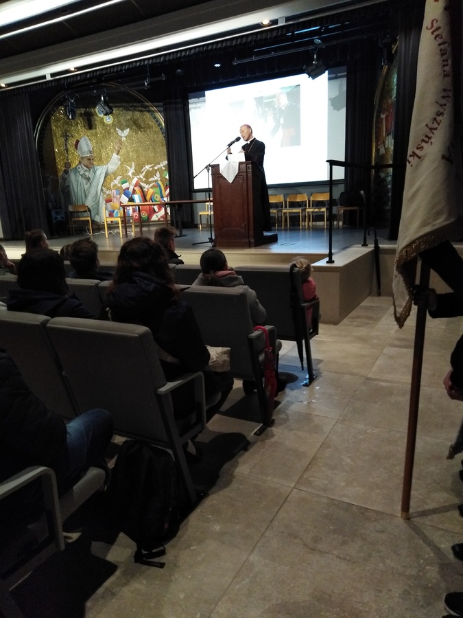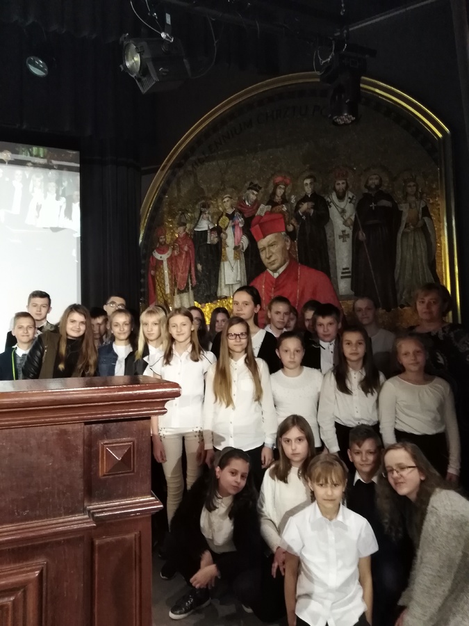 Prezentację naszej szkoły przedstawiła Kornelia Jeziorna. Na zakończenie otrzymaliśmy pamiątkę jubileuszowej pielgrzymki – książkę pt. „Kardynał Stefan Wyszyński 1901 – 1981”.