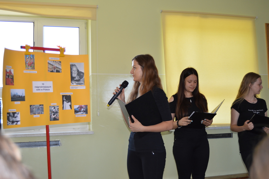 W ramach projektu uczniowie zapoznali się z najgroźniejszymi sektami działającymi w Polsce oraz z zagrożeniami wynikającymi z ich działalności. Z zebranych materiałów przygotowali prezentację multimedialną, z którą zapoznali młodszych kolegów. Zebrane w prezentacji materiały i informacje miały uświadomić uczniom, że sekty zniewalają ludzi.